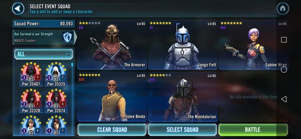 Why do we have a GC that's entirely gated on new, paywalled characters? The only usable leader for a full mandalorian squad is the armorer, who is pay to play. Aside from that, all the other mandalorians that aren't jango or mando are not great characters.