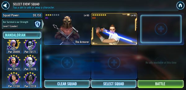 Why do we have a GC that's entirely gated on new, paywalled characters? The only usable leader for a full mandalorian squad is the armorer, who is pay to play. Aside from that, all the other mandalorians that aren't jango or mando are not great characters.