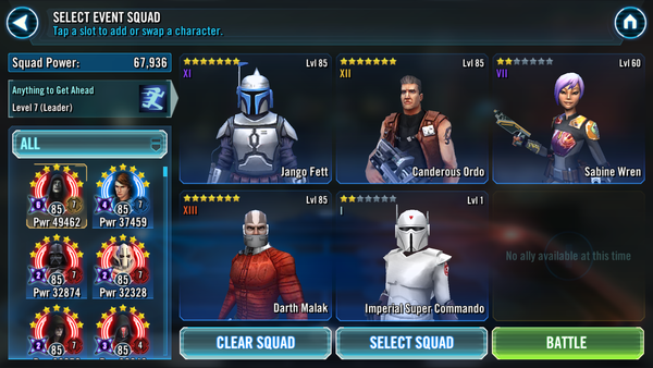 Why do we have a GC that's entirely gated on new, paywalled characters? The only usable leader for a full mandalorian squad is the armorer, who is pay to play. Aside from that, all the other mandalorians that aren't jango or mando are not great characters.