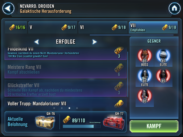Agreed. Any variation of this works. Cleared enough for T6 crate. Don’t have BMando and the rest of the faction is garbage on their own. Not trying to even get T7 rewards as that’s locked behind this GC’s paywall
