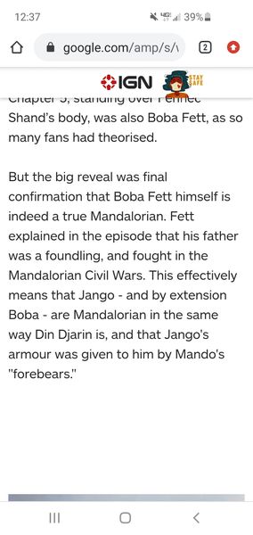 - Veritlyn5 years agoRising AceEvery article I've found calls Boba a foundling like his father based on birthright. This could be people jumping to conclusions, but I don't believe they would have included the chain code scene unless they were meaning to confirm that both the Fetts are Mandalorians.