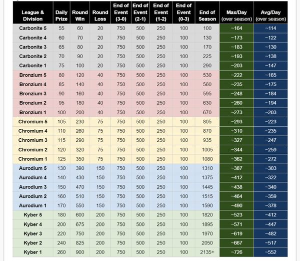 In a perfect matchmaker/ranking system with all players playing their best, you get a long term 50% win rate. My guess is that is not the bar for kyber. So anyone but the top 0.1% of players who simply cannot be evenly matched all the time looking at the kyber average daily rewards is being fooled.
