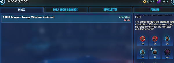 Since there are also level 0 DC cubes in the milestone reward package, you cannot retrieve the reward if you have no space for the cubes.