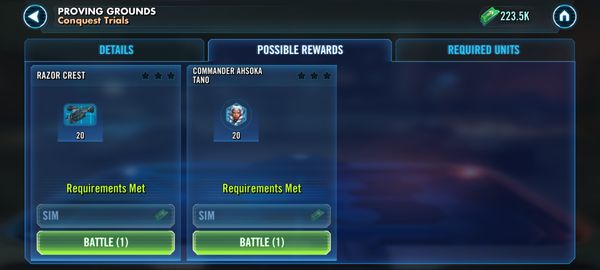 Both of the missions are pretty difficult. Couldn't even win with a SEE team (my wat isn't 7* so didn't qualify) but managed with GaS. The other battle vs Moff I did my own troopers and had no issue. I can understand why they require 4m roster now due to the difficulty of the battles.