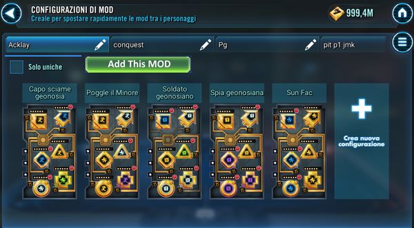 We are all struggling with changing mods from one character to another for various events. One thing that wastes a lot of time is just putting all the mods back in place once the event is over.