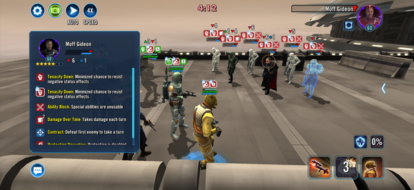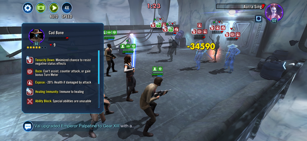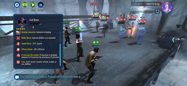 I am using a full squad of relic 5 resistance except for jtr who is gear 12. The bounty hunters get down to a sliver of health but won’t die or continue to take damage. I check their buffs and debuffs and didn’t find anything that would prevent damage. Also checked the conquest specific info for that battle and nothing… after about a minute in a figured it would kill them eventually but the match timed out twice. Once with me using the resistance squad and once using a bounty hunter squad that is relic 7…
