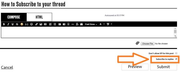 Whether you've created a new thread or found an existing one that you'd like to keep up with it, subscribing will ensure you are notified when a new post is shared. For new threads you create, you can subscribe to your thread from the draft page by checking the 'Subscribe to replies' box at the bottom