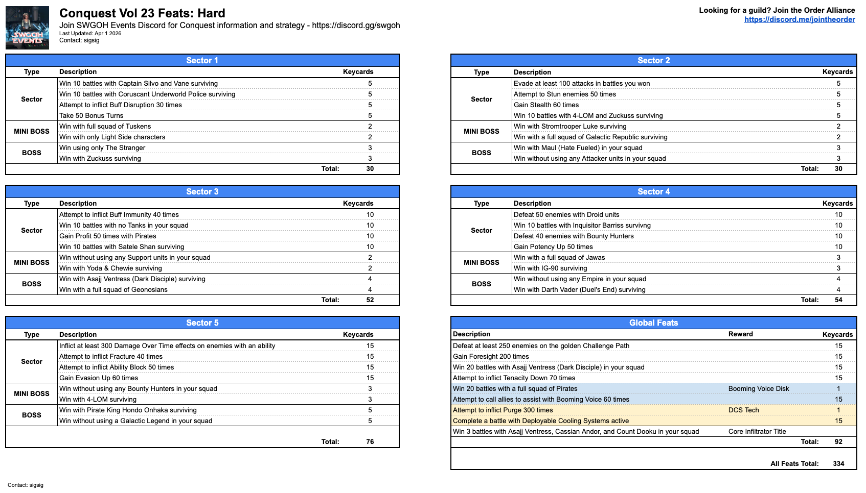 Sig Sig has posted the Feats from the Datamine. There are a lot of feats that require Full Squad of Tuskin, Jawa, Pirates, all of the last era toons surviving, and owning the Stranger. I would imagine sector 4 and 5 will be tuned to Relic 9 and 10 player toons using 6* mods and a major boost to their speed and base stats. I can't imagine CG making this event anything but a monetization fest. The link I posted is to SigSig's discord anyone can join, be respectful.