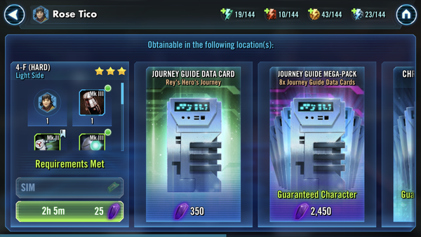 Same here. Go to the Journey Guide, select BB-8 and click on 'Shop'. You'll see the packs with the FO TIEs.- Fredy56 years agoSeasoned VeteranWho cares about the new useless 5 stars toon that will require 30 G13 R7 Toons to unlock and 1 year to get to 7 stars with Get 2 token or even GAC tokens .....
