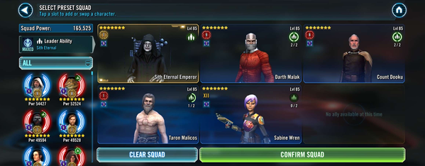 Malak lead, Dooku and Wat can give you more against boss Palp and Vader- scuba752 years agoLegend