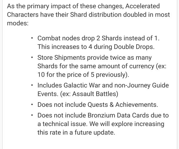 TL;DR Summary: Accelerated Characters will now reach 7 Stars twice as quickly for all players. Shard Shop purchasing is unchanged, all the numbers are just doubled.