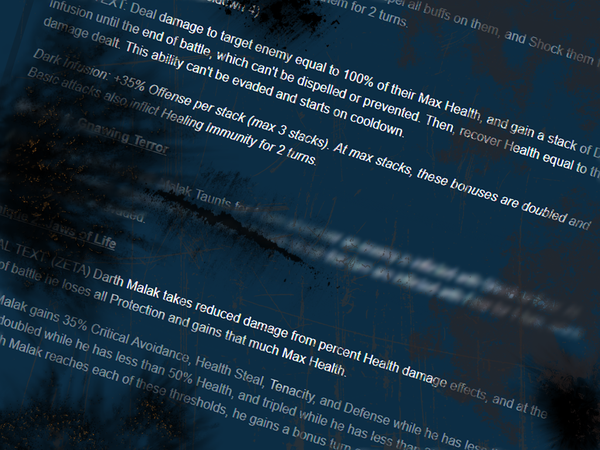In the first battle, you’ll face Darth Malak using Jedi Knight Revan and any four of the characters needed unlock Jedi Knight Revan (Bastila Shan, Jolee Bindo, T3-M4, Mission and Zaalbar). The second battle will require Darth Revan with any four of the characters that unlocked Darth Revan, Canderous Ordo, Carth Onasi, Juhani, HK-47 and Bastila Shan (Fallen). Darth Malak shards will appear in the Guild Event Store when you unlock Darth Malak at Five Stars.