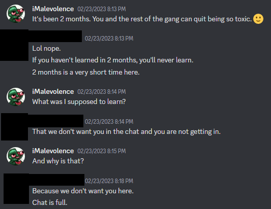 /e Those attempts to reach out are but a snippet. I've reached out to at least half a dozen or more people and I'm always met with pretty much the same type of response. Frustrated toxicity. I know their frustration because the shard is extremely active and it's draining (even more so when being harassed by the mafia by chaining and locking). My attempts to make it more cooperative have always been met with hostility. I changed my payout to a different slot, I was only climbing during my hour and spending a decent chunk of crystals on timer refreshes to fit all of my climbing in that hour to actually try to reach top 5 or better. After setting up my rotbot, I avoided hitting people in my time slot and would only hit people who were 2+ hours away unless it couldn't be helped. - iMalevolence3 years agoNew Ace