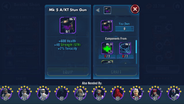 Right now I have 18 charters who needs it, some of them needs more then one for one gear level and after leveling will need more freaking stun guns.