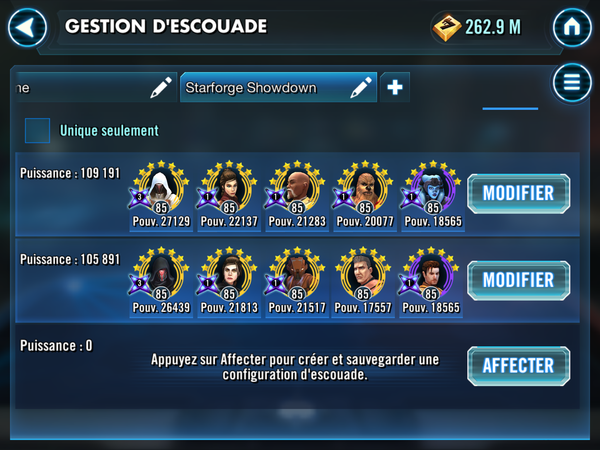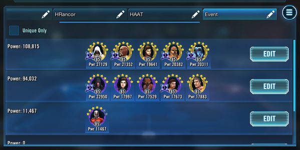 My characters are not especially great, far from top arena ladder: - Oh yeah. I forgot to post here that I got Malak. Yesterday actually. DS was pretty easy but the LS was giving me difficultly at first. Once I moved mods around I beat it on my first try. :sunglasses: