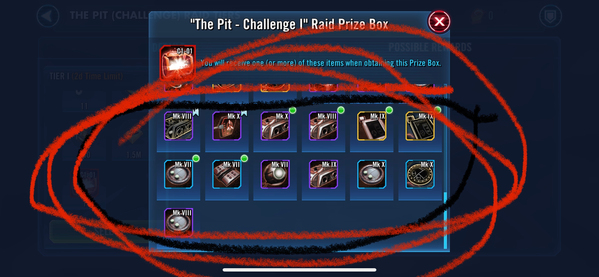 The Challenge Tier for The Pit raid requires a high level Guild to work closely together in order to complete. While the rewards will help you power up your squads even further, the event is intended to challenge a guild as whole. As a result, it will be very difficult for a player or even a handful of guildmates to complete. Similar to Heroic Raids, Guilds will have 48 hours to complete this event. Since the Challenge Tier is designed to require cooperation, we have opted for a flatter prizing structure to reduce some of the friction in-guild while still acknowledging degrees of participation and success. In short, every player who participates will earn the new Level 8 Relic Amplifier material, Aeromagnifiers.