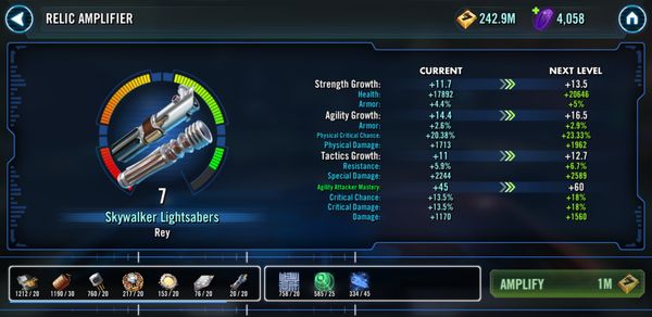 We wanted Relic 8 to initially have a raid-exclusive aspect in order to give Guilds some new goals to work toward and at the same time, reinforce the core gameplay for Guilds in Galaxy of Heroes. Here’s how many Aeromagnifiers you can earn (in addition to other rewards) from completing the Challenge Tier.
