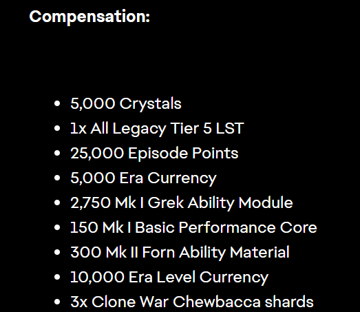 Nice of CG to raise hopes of getting some Era currency seen as pay outs have been so low. Instead I get the compensation inbox and to my disappointment ive ended up with Epsiode currency instead of Era currency.