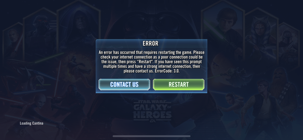 Error is back, on Android. I had the error yesterday, was fixed this morning, but I logged into the Webstore, which kicked me out of the game, and now I get the 3.0 error again and again.