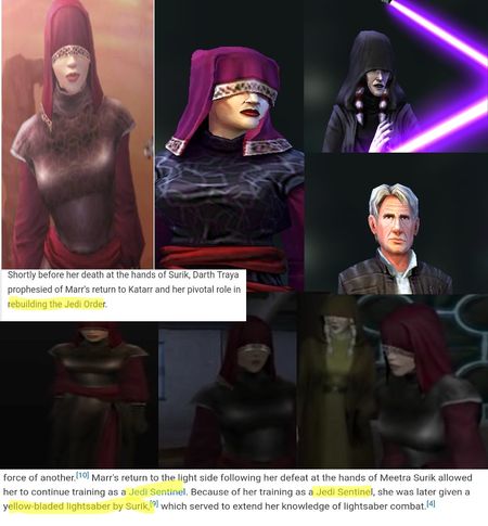 Visas Marr was a Jedi Sentinel in the game, (SHE HAS JEDI SENTINEL TAG in KOTOR II) she was trained by Meetra Surik (the Jedi Exile) and she had a yellow lightsaber (according to the Prima Official Ga...