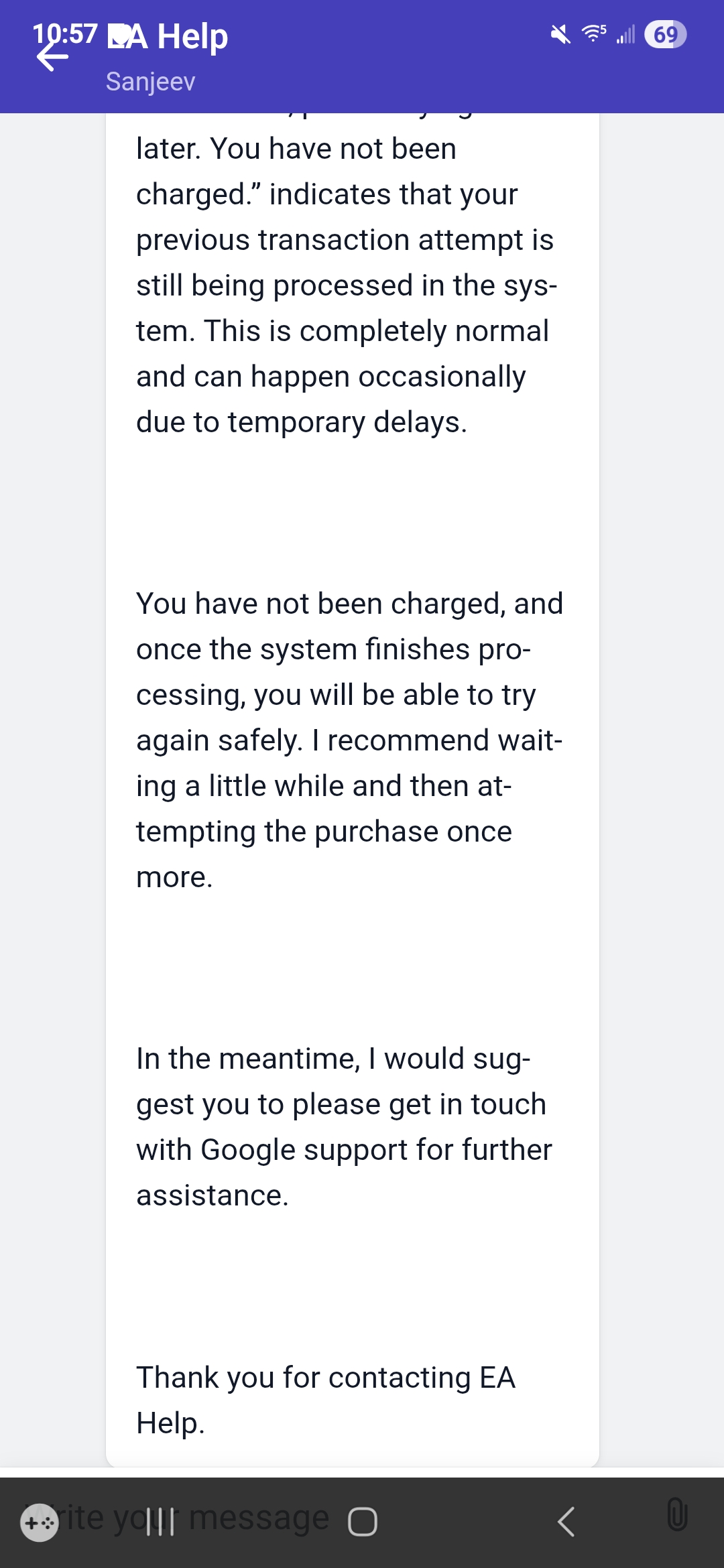 I've been getting a Pending Transaction error inside the game/app whenever I try to purchase something via mobile in the store that costs real money. The error says (screenshot attached): "Transaction Pending. Currently processing some transaction. Please try again later. You have not been charged."