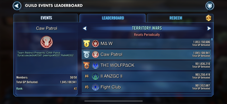 CAW fought bravely and decisively to score yet another victory and stay, once again, the GREATEST SWGOH Guild EVER!