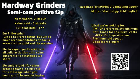 binary12065Seasoned Novice10 months agoHardway Grinders Semi-Competitive F2Phttps://swgoh.gg/g/lzN9tq5GTQeBnU9kyovwDA/https://discord.gg/2kbPvbqRKR