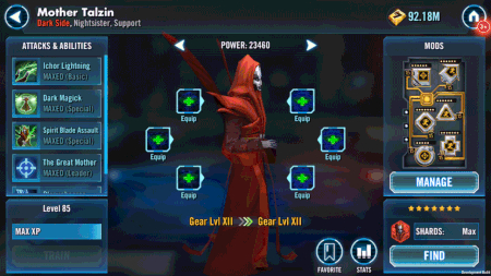 UNIT NAME:Mother Talzin ALIGNMENT: Dark CATEGORIES: Nightsister, support Vicious Nightsister Leader who inflicts Plague, preventing enemies from Dispelling debuffs. ABILITIES: Basic: I...