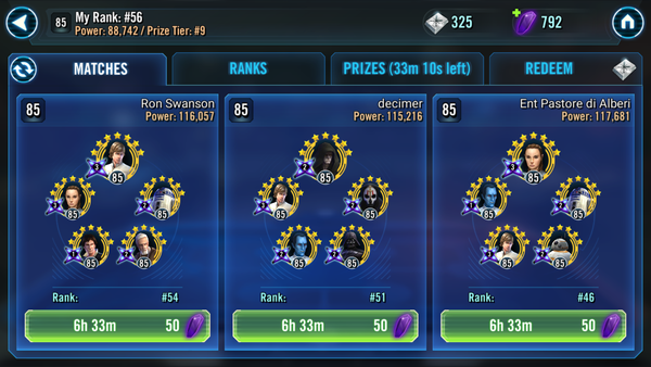 I'm sorry I don't agree. If arena is important to you then Pick a team and G12 it. I'm pretty sure literally everything can be farmed now but the raid exclusive HSith stuff. I don't have any of it. I'm guessing if you have a good team then you just need to work on speed. There are top 100 teams on my shard that are Palp, Vader Tarkin, Tie Pilot + Tank (Old Ben or even Royal Guard work).