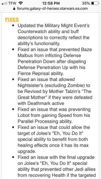 Sabine armor shred and Zaalbar armor shred. They explain armor shred in Sabine use of it but not Zaal - That isn’t a bug though death by terminate is what blocks revive,death mark reduces health. If that’s what they are changing then it’s based on a false bug report and misunderstanding of the terminate ability. Raid bosses abilities usually get a boost so they do differentiate from actual toons.