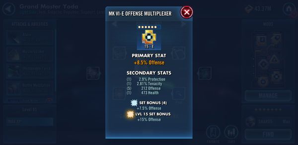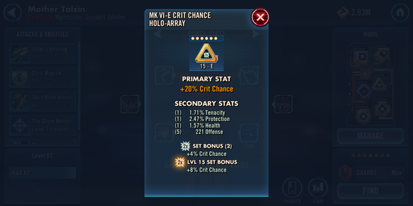 I've been going over some of my gear 12 toons and their mods in hopes of improving them in time for gear 13. I looked at some older mods on my raid han all 5 dot and in the final stage before 6 dot and I've seen at least 2 that have 100 or so attack. Granted it's been a while since I've seen a mod with that high of attack boost since most in my stock max anywhere roughly between 70 or mid 80.