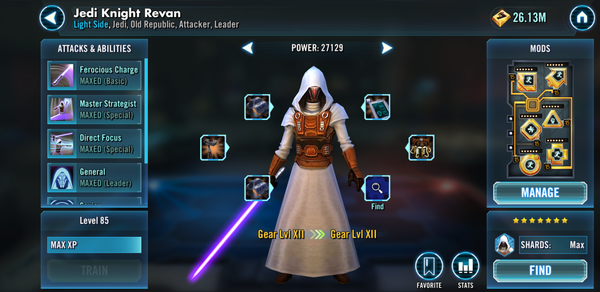 Are you a newer player who would like to borrow a really strong Jedi Knight Revan to use on the Light Side, Cantina, Mod Battle or challenge holo-tables?