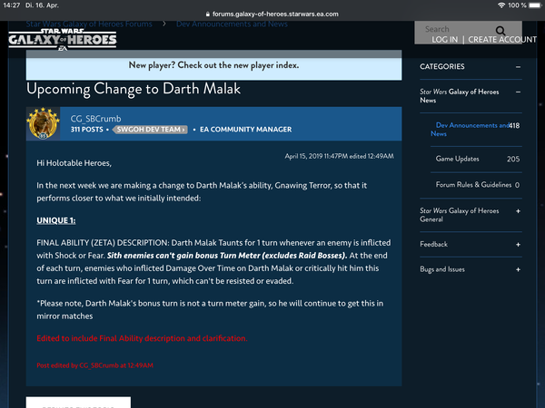 Share guides, tips, and tricks for Star Wars: Galaxy of Heroes, discuss Arena strats, and help new players get started.Latest Activity: 10 hours ago