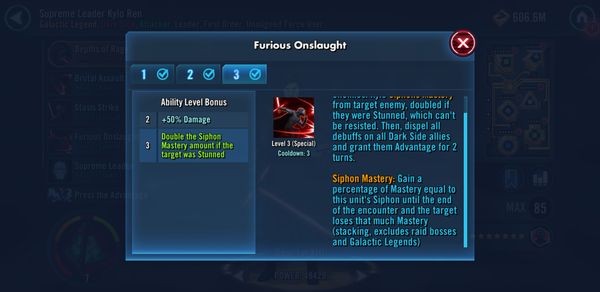 Ultimate Charge: Jedi Master Kenobi gains Ultimate Charge when he uses his abilities. If Jedi Master Kenobi is the Leader, he also gains 3% Ultimate Charge when another Light Side ally uses a Basic ability, doubled during their turn.