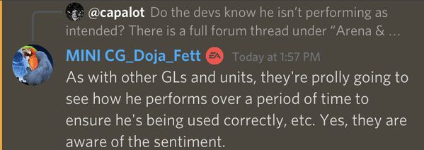 As well as being horrible on defense with terrible AI. Galactic legends aren’t equal and for the investment of LV, you’re better off ignoring him completely since he isn’t the top of arena, not the best in conquest, sucks on defense, meh in CRancor, etc.