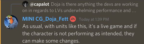 There is nothing LV does that Kenobi doesnt do better both in terms of offense and defence, and JMK is undeniably the superior GL. If LV didnt have significantly higher requirements and wasnt useless for 3 months until people could get Maul it would be one thing, but to after all that get JMK light is insulting.