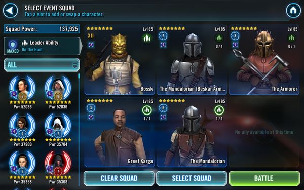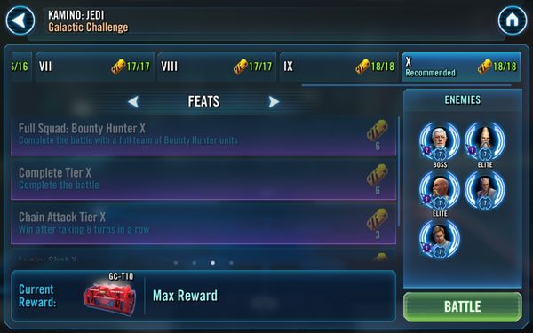 Recent DiscussionsLightspeed Bundles Permanent So how does this make sense so lightspeed bundles that are permanent are for people under 4 million. Which I bought a few but I don’t have some like for the Kylo Event but since I’m NOW over 4 millio...Leveling Without Purchase? How can I become competitive in the Arena without purchase anything from the shop? I’ve been playing for 20 days, every single day, I’m really enjoying this game, but now I’m stuck. I reached level...Conquest Immortality Bug? Tier 2 Normal Mode. Bossk team can’t be defeated. Ive used a JMK team, R9 Raddus Team, R7 Bossk Team. They don’t **bleep** die. ps. Video won’t upload Dark Lord of the Sith feat location Hi Holotable Heroes, Where can I find the "Dark Lord of the Sith" feat? This feat should provide the "Dark Lord of the Sith" title. A guild-mate has it, but unfortunately he/she cannot remember how...Conquest Sector 3 17/88 How do I beat this, they have Zuckuss, Zam Wesell, Aurra Sing, Cad Bane and 4-Lom. I get everyone into the red but they never fall. Help please! Thank you