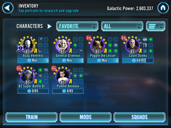 Spending 2 hours to get 5 star tier undone though is pretty ridiculous. The fact that CG relies so heavily on RNG is getting tiresome. I pretty much used the same squad the whole time. I swapped out a couple toons to try different teams, but came back to this same crew to do it in the end. RNG factors in way too much and it shouldn't. If you have the toons and mods to do something, it shouldn't take 15 tries to complete it. - Here is what Padme needs at gear 8 :