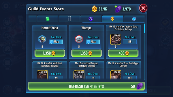 I broke down and threw a zeta on Hermit already, but I'm holding out to do that on Wampa until I get him to 7 stars because I'm currently gearing Chewbacca and JTR.