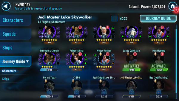 I know it ll take probably 2--4 months more the farming . ( my c3p is waiting on wicket 7* to start gearing my ewoks and get him . My JTR is by far the hardest as i need to farm finn/2 veterans to 7*) top 1000 squad arena / top 50 ships .Another reason is i kinda got dissapointed by recent nerf to SEE...Hoda will take about 5 months to go 7* i guess he ll be my last 7* ..then the gearing progress . I have decided to go for JML probably but i would appreciate your thoughs!! Thanks in advance:)