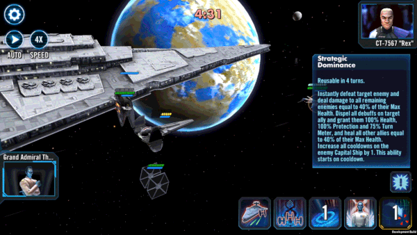 - Strategic Dominance can help you bypass Endurance’s damage immunity on a taunt or deal with that pesky TIE Fighter. It is also the first ability to lock down the enemy capital ship’s abilities, preventing them from reinforcing, using their ultimate, or taking any significant action for an additional turn.
