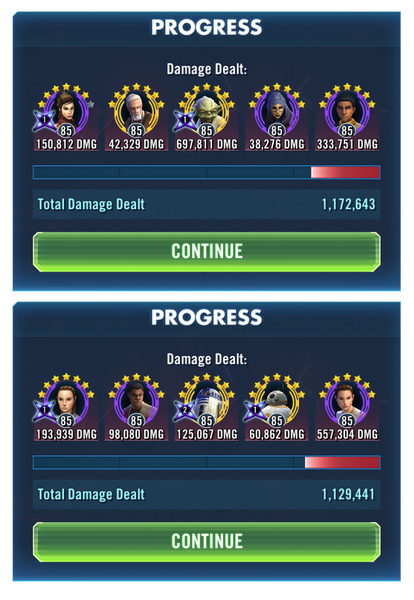 Which yoda zeta is that? I do around 4mil in p4 tier 6 with my jedi against nihl, though they are stacked. I use gmyzz (l), ezraz, bastillaz, gk, hyodaz. You just go to town against nihl with all the tm gains. I'd recommend getting rid of finn for resistence trooper, hes a workhorse for jtr teams. But with that said p4 is pretty rough on jtr, they can't handle the traya stacks nearly as well ad other teams