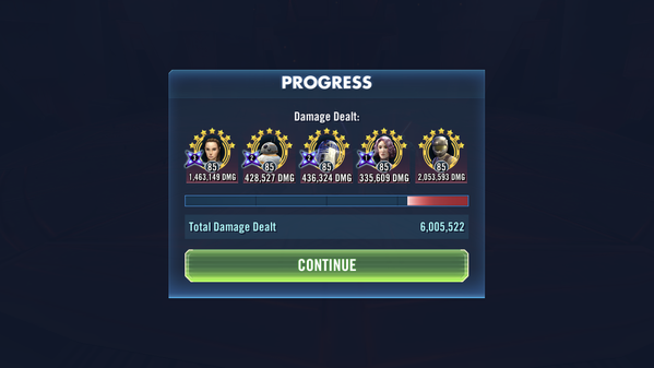 We're still getting our bearings, in T4 (post update) we finished in 2 hours. T5, has a wicked difficulty curve. I used to run my Jedi in p1, Rebels (wedge, biggs, r2, cls, han) Empire (zDV, zThrawn, Veers g10, Tarkin g10, TFP g9). Phoenix (minus Ezra, he is in my jedi. Put in Zeb). And First Order I think and have approx. 5 mil in. Others did the same. This was before the update.