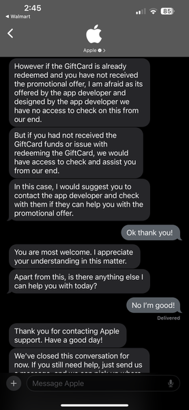 CG_Meathead CG_SBCrumb Can we find a reasonable solution to this? EA help is telling me that its an apple/target issue and apple/Target is saying that it's an in-game issue. I purchased three gift cards for this promotion, but I only received two. EA help is giving me the run around, even though I provided proof of my $50 Target Apple gift card purchase. Help us out!