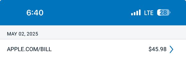 I attached screenshots of my bank statement and apple purchase for the charge on april 22nd and today, may 2nd.