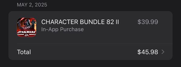 on april 22nd i purchased the CX2 bundle for 30 shards, 5 omis, etc through the webstore and was charged for it then. today i was charged for Character Bundle 82 II, which i believe is the same CX2 pack, through in game. The only thing i purchased today was the jedi vanguard bundle, through the webstore. Id appreciate some clarity on what happened here because i would have liked to spend that money on the other lsbs