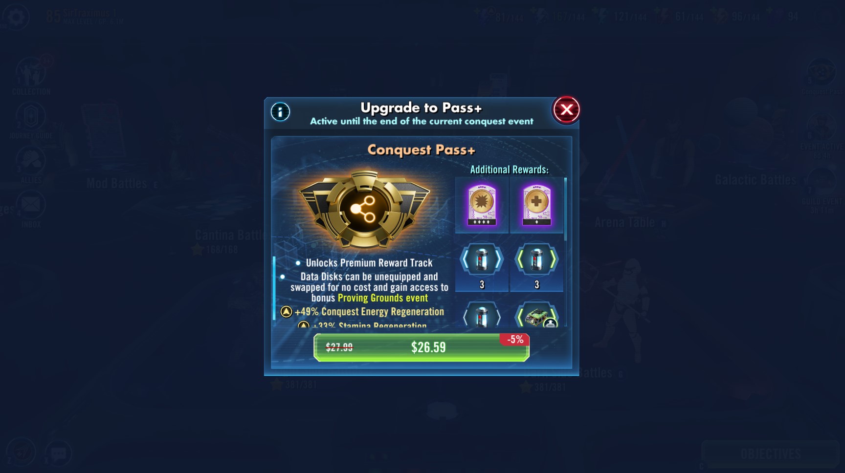 Product: Star Wars: Galaxy of Heroes Platform:iOS What type of device are you experiencing the issue with? Conquest Pass on PC Beta Client OS Version PC Ally Code: (Find it here: http://bit.ly/Al...
