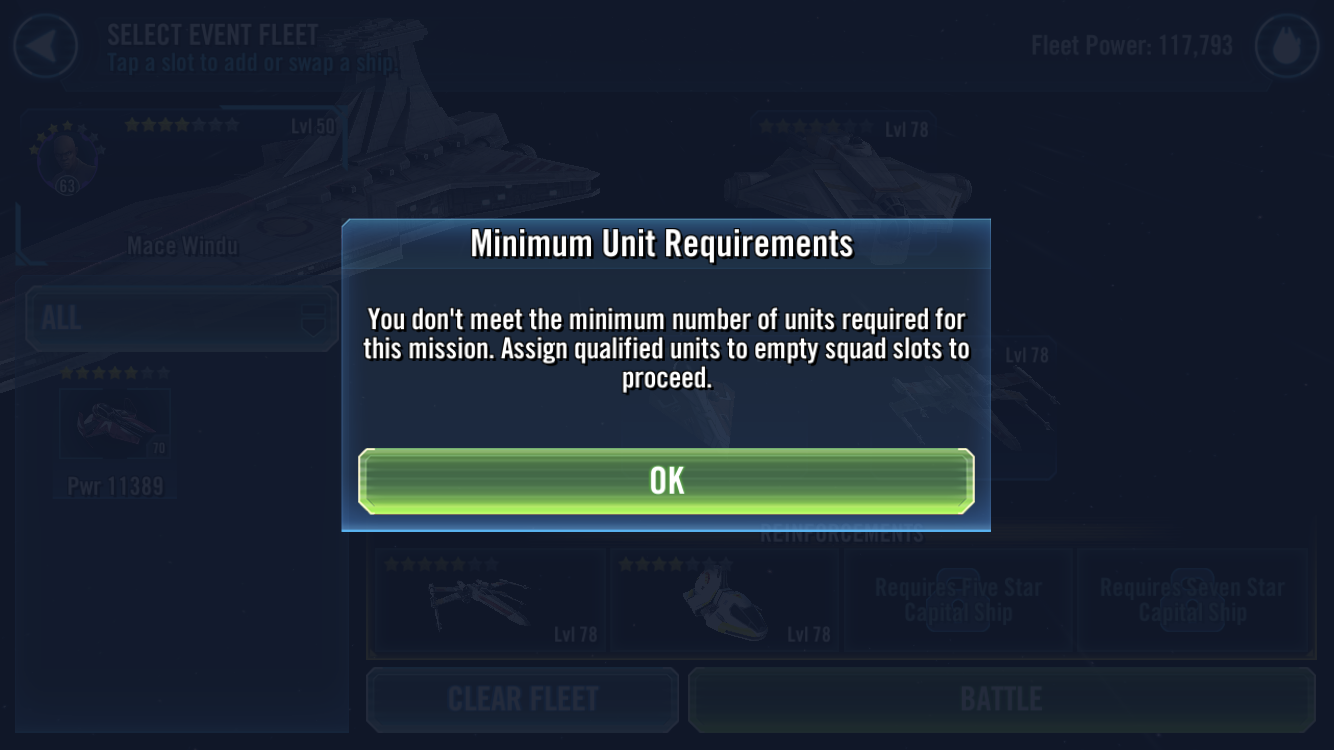 Steps: How can we find the bug ourselves? attempt this battle with a Capitol ship that has only two reinforcements