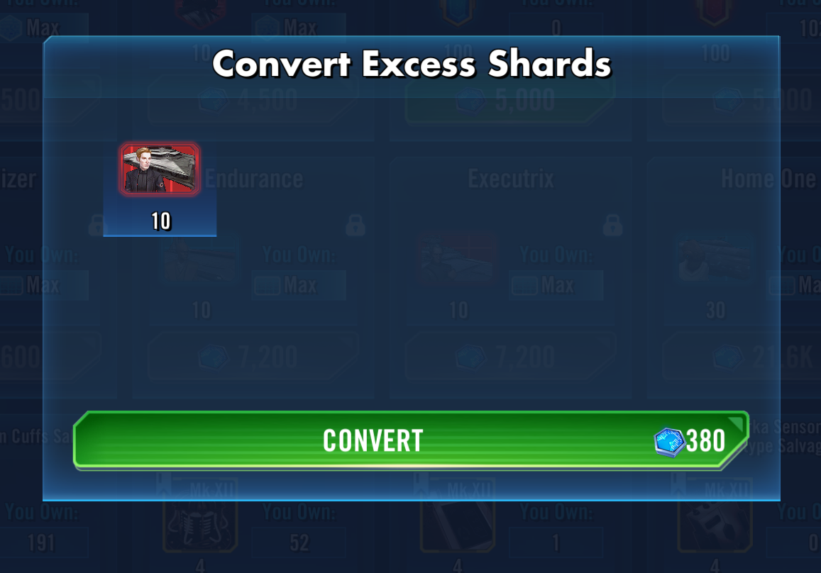 My game on pc froze up today while I was collecting my Bronzium data card. I ended up spending 1250 on the Finalizer pack. I contacted in game support to see if that could be returned (I've been saving for the 500 crystal relic packs today) and they replied they can't refund in game purchases. I know other things (LSB's for example) don't show up in the shop if you already have the items maxed. Same with Era characters. If you (CG) won't refund purchases made on accident that are worth a decent chunk, please consider removing them from the in game store as well then. Attaching screenshots of the store, my completed finalizer, and where I still have the extra shards. The support response said they "couldn't refund the 7 star finalizer". I'm not sure if they misunderstood and thought I upgraded to that and wanted it reverted. But either way, the store updates and removes content that is completed. They removed the fleet events that people had completed. If a refund isn't possible, please remove the ship bundles that are completed as well.