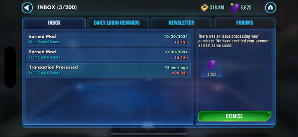 I tried to purchase the Chewbacca LSB from the web store, that was fine but in the client got the dreaded “there was an error with your purchase” and got crystals instead. What can I do? I really don’t want the crystals just the LSB.